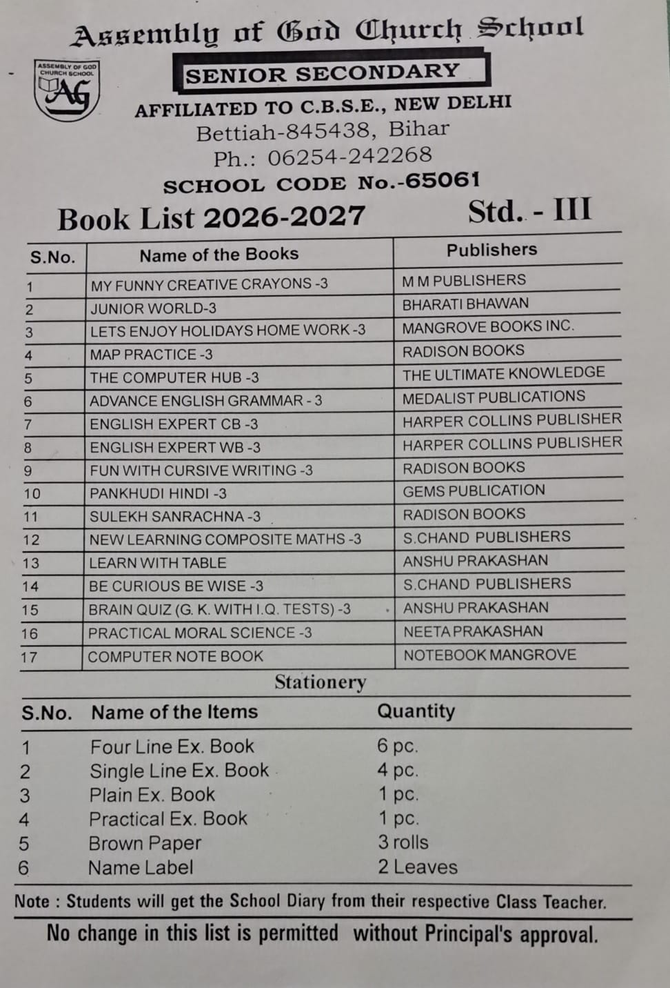 Book List (26-27) Class-III