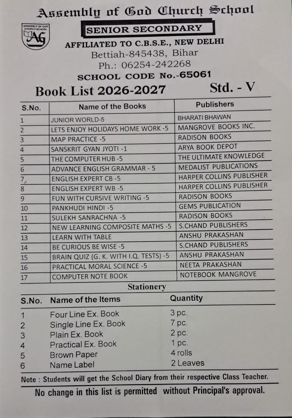 Book List (26-27) Class-V