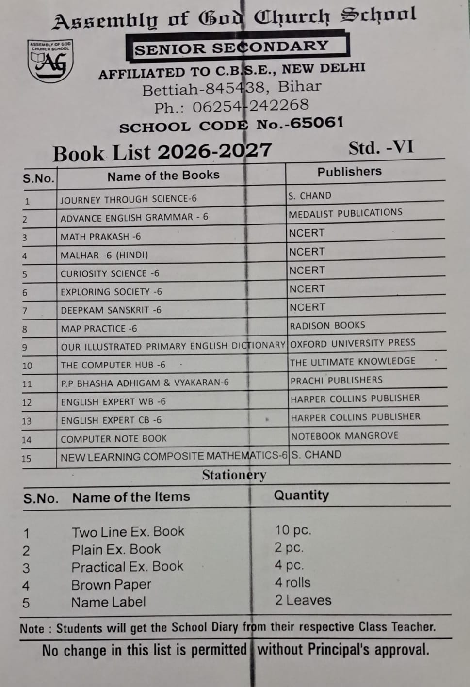 Book List (26-27) Class-VI